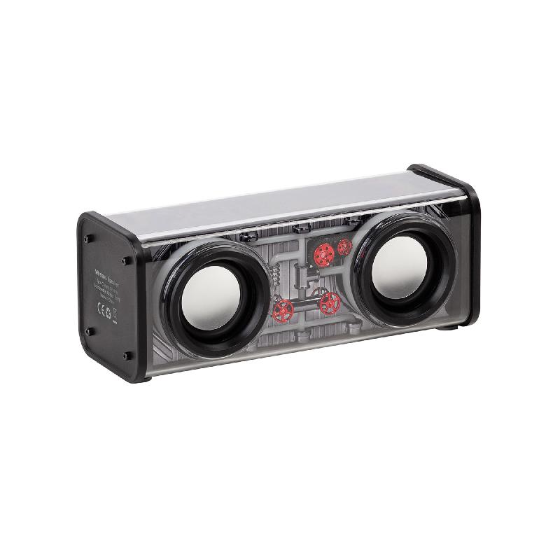 При включении колонка воспроизводит звук мощного автомобильного двигателя. Глубокое, сочное и чистое стереозвучание музыки обеспечивают 2 динамика по 5Вт с усиленными басами. Есть возможность соединить беспроводным способом 2 колонки в пару, создав стереосистему с мощностью звука 20Вт. Более 15 разнообразных режимов разноцветной подсветки при начале воспроизведения музыки превращаются в яркий и эффектный эквалайзер. При необходимости подсветку можно отключить, оставив только воспроизведение звука. Встроенный микрофон добавляет гаджету режим беспроводной гарнитуры hands-free. Также есть возможзность использования TF-карт, слот для них находится на обратной стороне корпуса колонки.