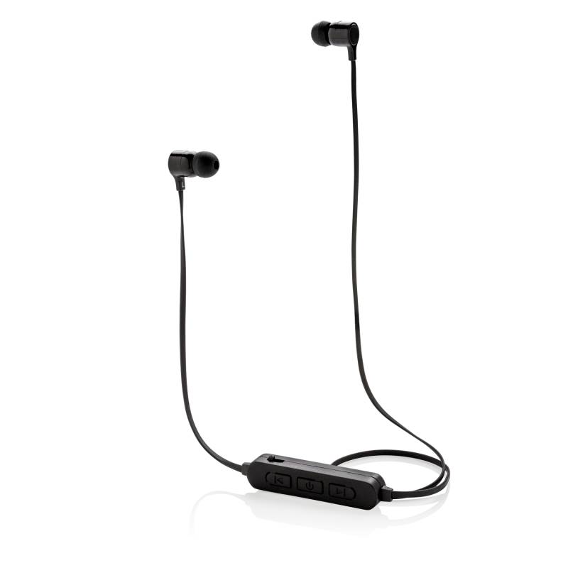 Беспроводные наушники, которые можно кастомизировать вашим подсвеченным логотипом, нанесенным на пульт управления. Bluetooth версии 4.2 для гладкого подключения с рабочего расстояния 10 метров. Встроенный аккумулятор емкостью 55 мАч, который позволяет слушать музыку до 3 часов на одном заряде, а перезарядка занимает 1,5 часа. Функции микрофона и приема входящих звонков.