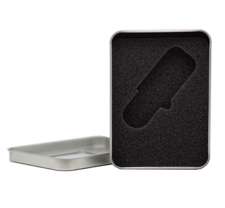 Футляр металлический с ложементом под флеш накопитель в кожаном чехле