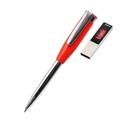 Ручка металлическая Memphys c флешкой 64Гб, красная