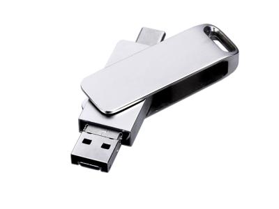 Флеш-накопитель поворотный механизм, c дополнительным разъемом Micro USB с одноцветным металлическим клипом, объем памяти 64 ГБ. Металлический корпус.