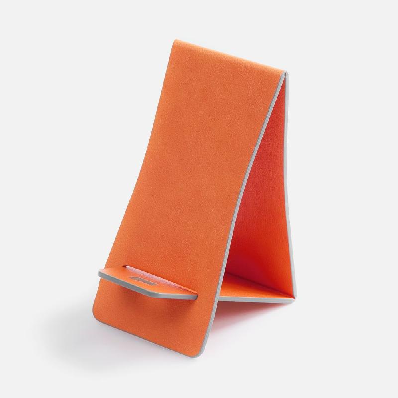 Складная подставка для телефона с вырубкой под шнур зарядного устройства. Выполнена из материала Petrus.