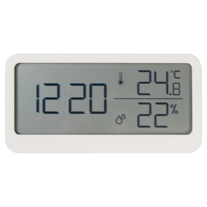 Настольные часы с термометром и гигрометром, оснащены информативным ЖК-дисплеем. Отображают текущее время, температуру и влажность воздуха, обеспечивая комфорт и контроль микроклимата в помещении. Удобное размещение — на столе или на стене благодаря встроенному магниту и откидной подставке.