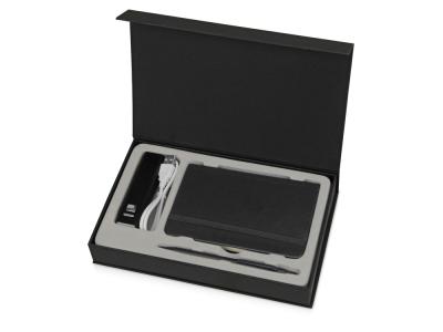В набор Ион входят предметы, без которых не обойтись современному деловому человеку. В упаковочную коробку вложены портативное зарядное устройство емкостью 3000 mAh, провод USB со сменными разъемами: micro-USB, mini-USB, Lightning, линованный блокнот формата А6 с закладкой, эластичной застежкой и удобным карманом для карточек и записок, а также металлическая шариковая ручка с нажимным механизмом. Набор Ион – отличный подарок для тех, кто идет в ногу со временем.