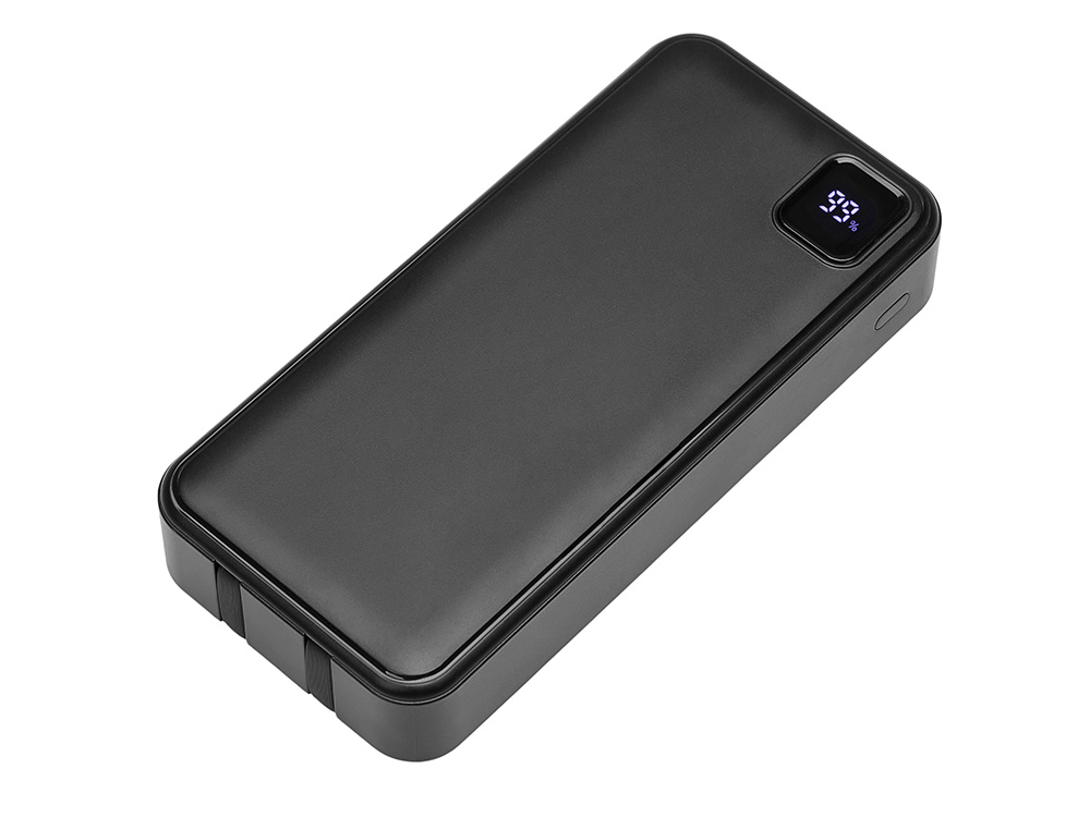 Удобный внешний аккумулятор с функцией быстрой зарядки и встроенными кабелями USB-C (симметричный разъём USB тип С) и Lightning (разъём в ранних версиях iPhone) — ваш надежный партнер в путешествиях, на встречах и в повседневных задачах. Цифровой дисплей в реальном времени показывает точный остаток заряда и статус быстрой зарядки, а встроенные кабели и несколько разъемов позволяют заряжать до 4 устройств. Прочный корпус из переработанного АБС-пластика и емкость 20000 мАч обеспечивают зарядом все ваши устройства на долгий срок. Идеальный выбор для тех, кто ценит комфорт и функциональность в одном устройстве. Продуманная упаковка: для открытия просто потяните за язычок, и появится гаджет с нанесением.