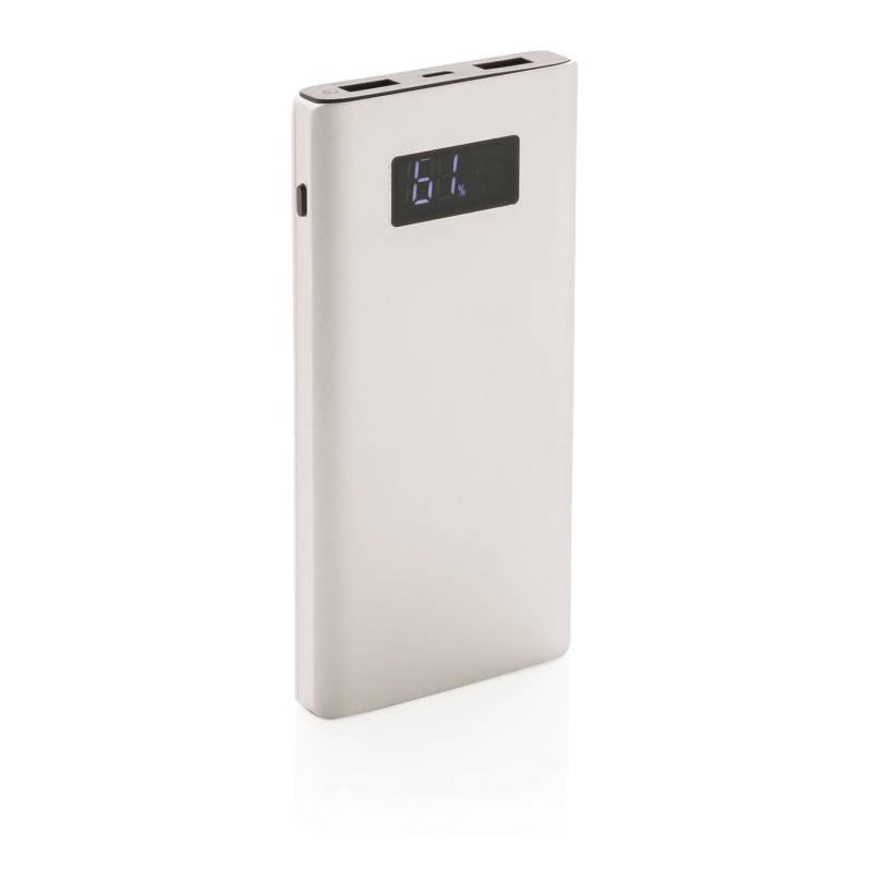 Алюминиевое зарядное устройство с литий-полимерным аккумулятором емкостью 10 000 мАч дополнено удобным LCD-дисплеем, на котором отображается уровень заряда. На устройстве предусмотрено два USB-выхода, один из которых, порт Quick Charge 3.0, предназначен для быстрой зарядки мобильных устройств. Напряжение на выходе - DC 5V/3A, 9V/2A, 12V/1.5A, на входе - 5V/3A. В комплекте идет кабель micro-USB.