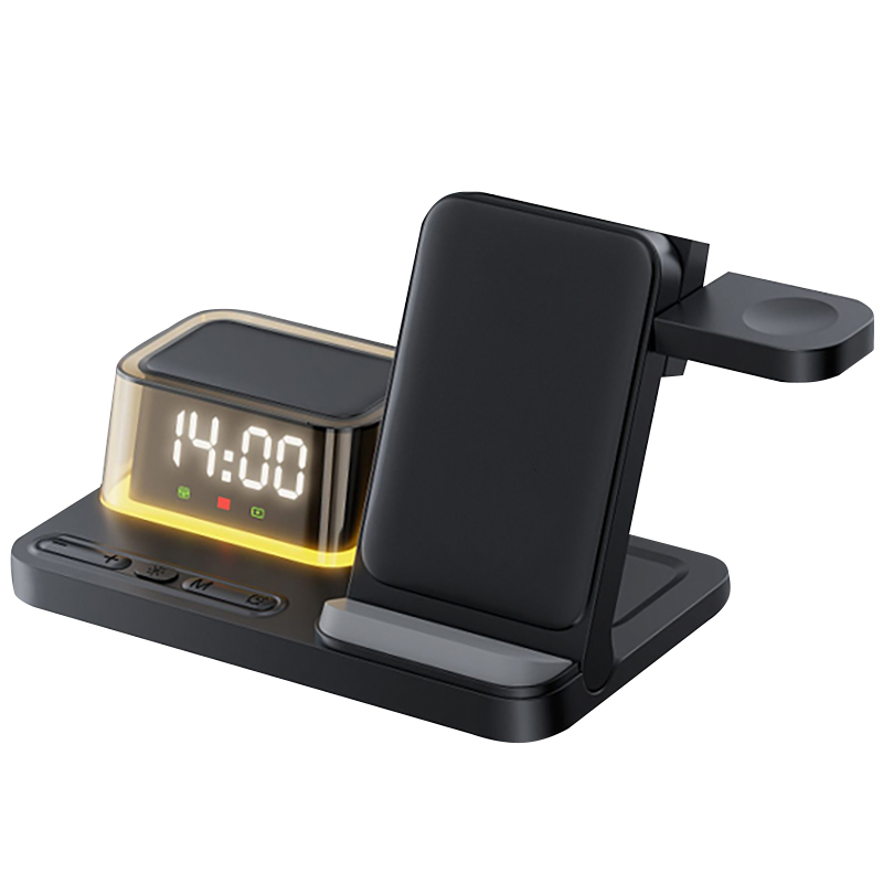Volt - стильная док-станция 7 в 1, которая объединяет в себе функции: 1. Складывающая беспроводная зарядка для телефона как в вертикальном положении, так и в горизонтальном: подходит для смартфонов с функцией беспроводной подзарядки Android/IOS. 2. Беспроводная зарядка для наушников: специальное отделение для беспроводной зарядки наушников с поддержкой технологии Qi. 3. Раскладывающаяся беспроводная зарядка для часов: возможность зарядки умных часов Apple Watch и Samsung Watch, 4. Подставка для телефона: удобная подставка, обеспечивающая устойчивую поддержку смартфона в вертикальном и горизонтальном положениях во время зарядки. 5. Мягкая подстветка 6. Цифровые часы с отображением времени 7. Будильник Эта беспроводная зарядная станция объединяет удобство, высокую эффективность и современный дизайн, делая её идеальным решением для дома, офиса или рабочего пространства. Volt — это стиль, забота и технологии, собранные в одном устройстве, которое делает вашу жизнь проще.