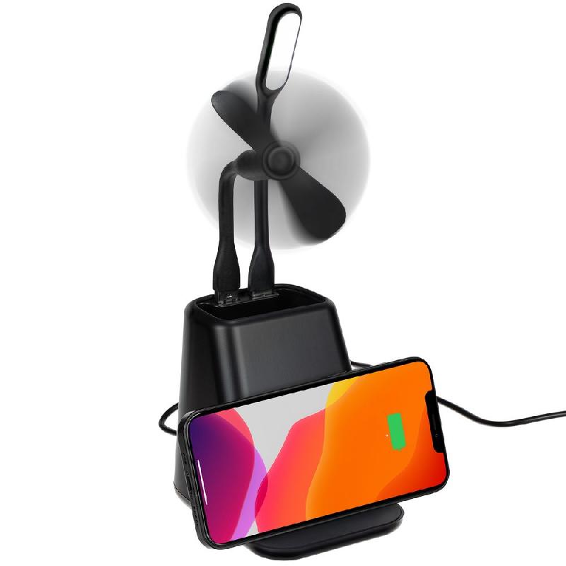 Настольный органайзер с зарядкой, лампой, вентилятором и подсветкой логотипа powerTower