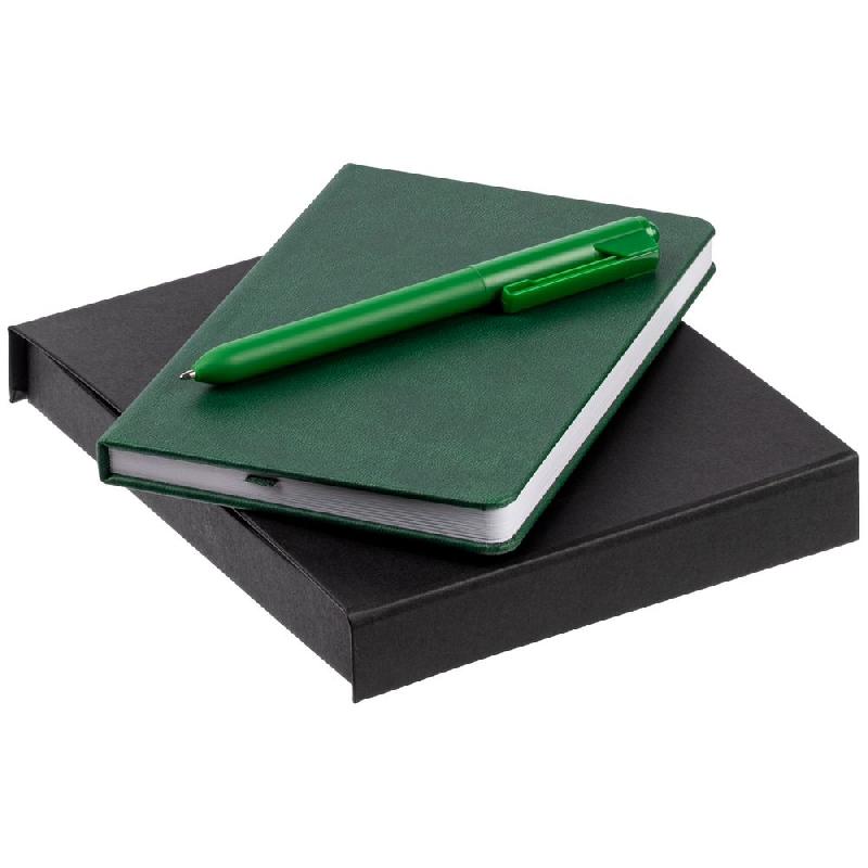 блокнот - искусственная кожа; ручка - пластик; коробка - переплетный картон