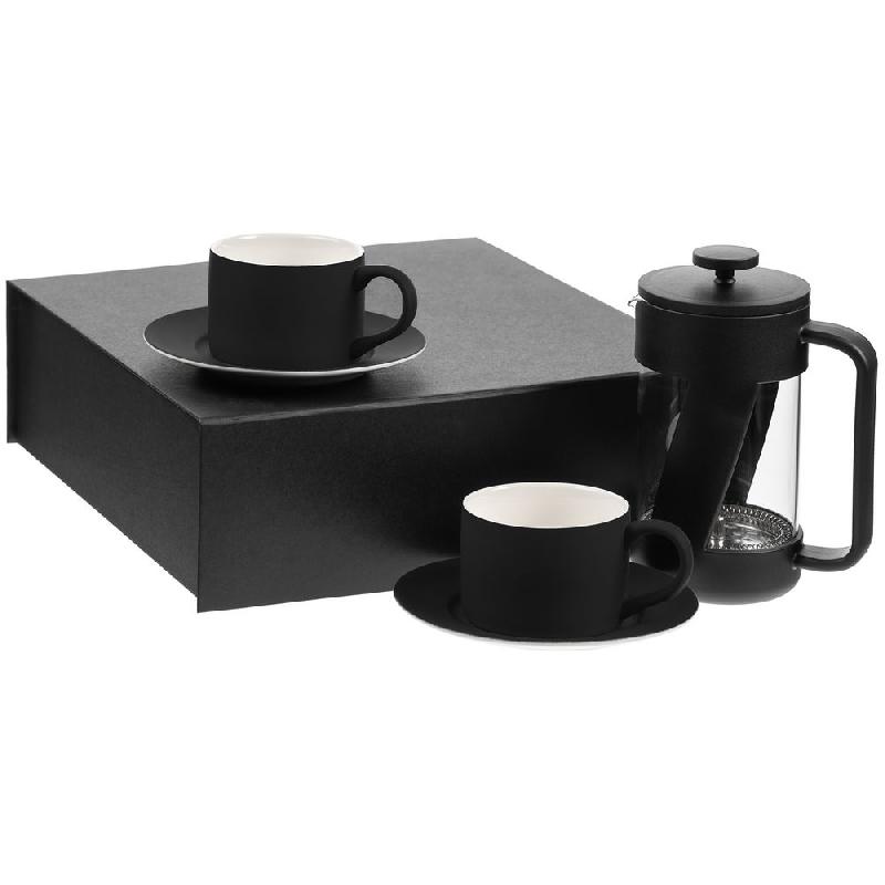 френч-пресс: высота 18 см, диаметр 9 см, ширина с ручкой 13 см; чашка: диаметр 8,5 см, высота 6 см, ширина с ручкой 11,6 см; блюдце: 15,5x1 см; коробка 31х30,5х10,5 см