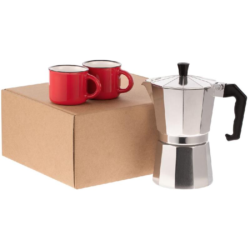кофеварка - алюминий, пластик; кружка - фаянс; коробка - микрогофрокартон