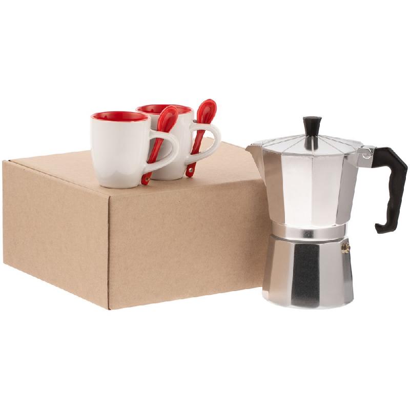 кружка: диаметр 5,8 см, высота 6,9 см; ложка: 8,5x2 см; кофеварка: высота 19 см, диаметр 10 см, ширина с ручкой 17 см; коробка 25,3х21,2х11,4 см