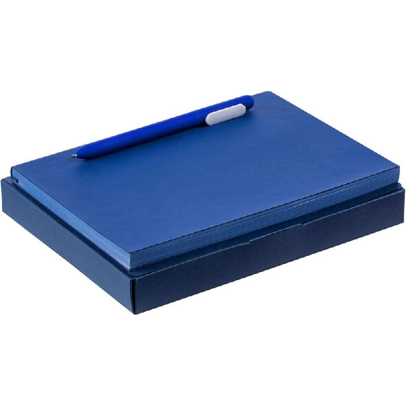 Компактный набор со стильным ежедневником в гибкой обложке с покрытием софт-тач и подходящей ручкой. Все составляющие сложены в самосборную коробку, которая придает набору законченность.