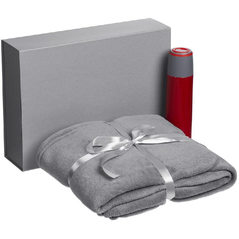 термос - нержавеющая сталь, корпус; пластик, крышка; плед - полиэстер 100%, длинноворсный флис, 220 г/м²; коробка - переплетный картон