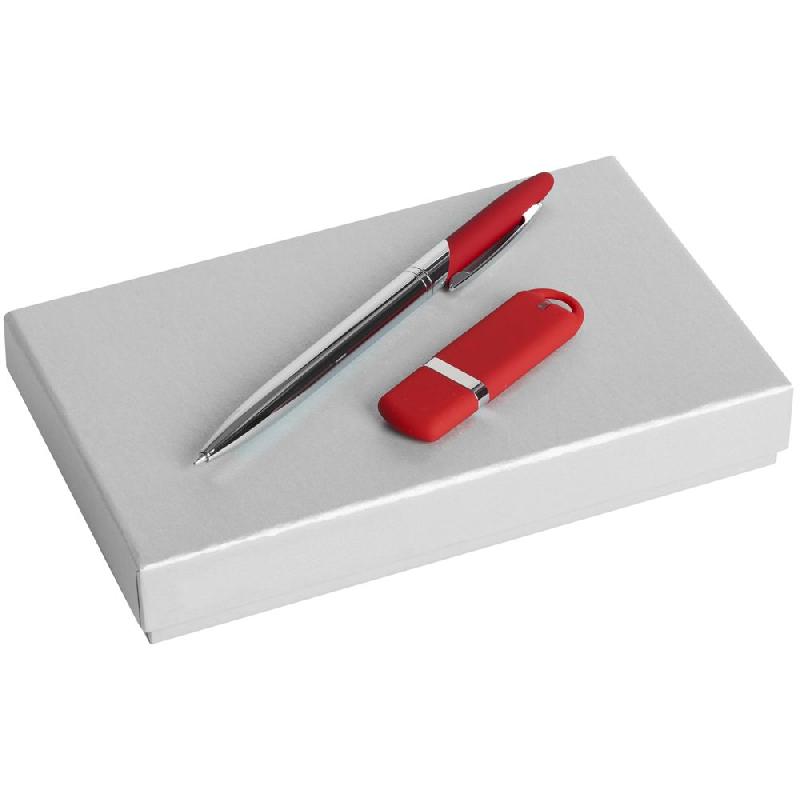 флешка - пластик, покрытие софт-тач; ручка - металл, покрытие софт-тач; переплетный картон