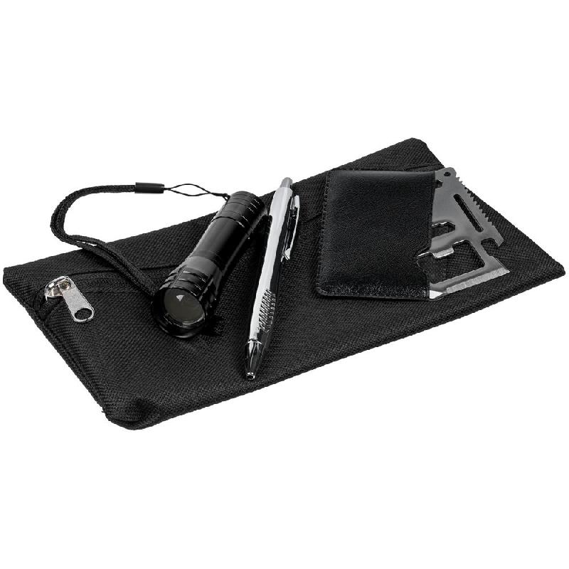 фонарь - алюминий; мультитул - нержавеющая сталь, искусственная кожа; ручка - пластик