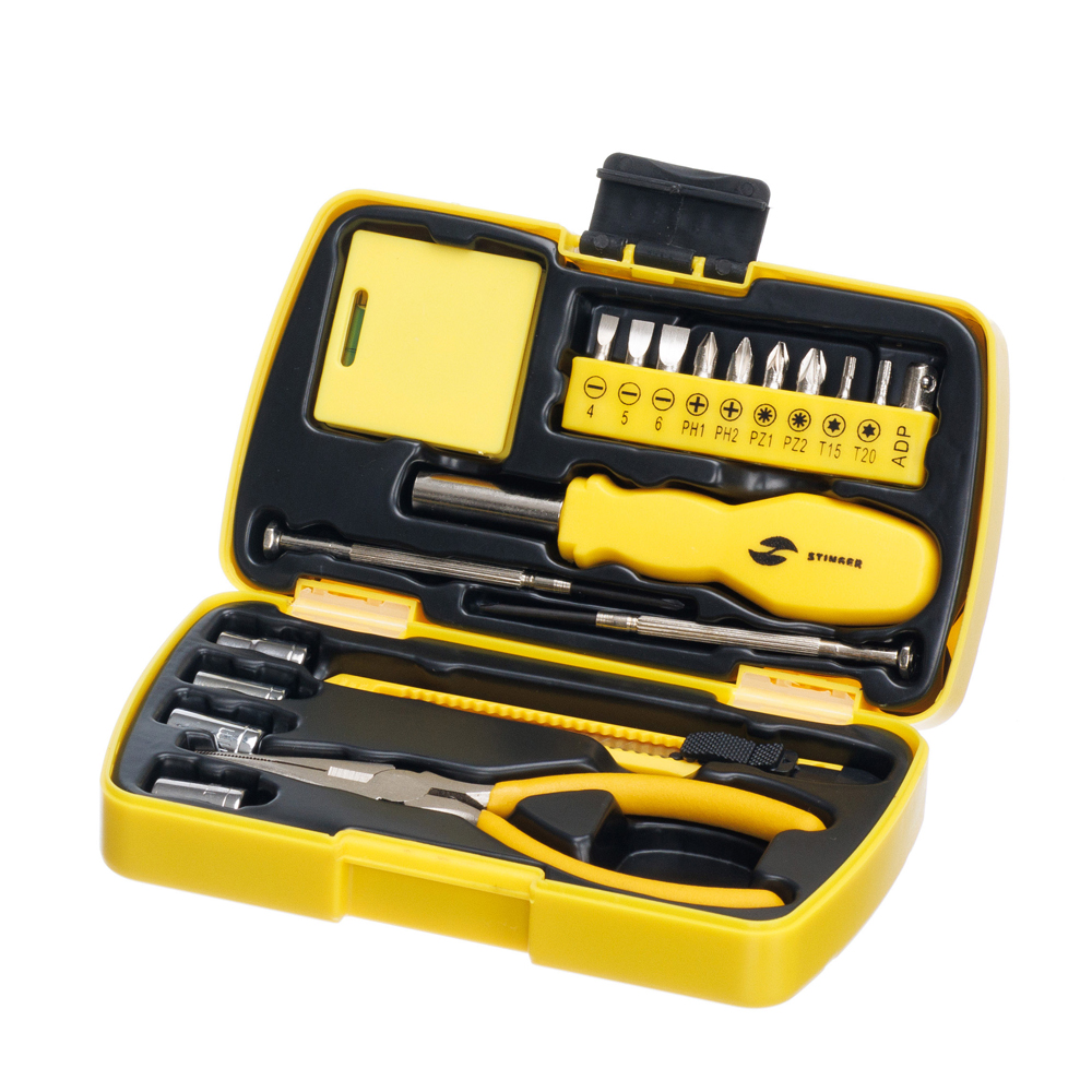 Набор инструментов Stinger, 20 инструментов, в пластиковом кейсе, 160х90x40 мм, желтый