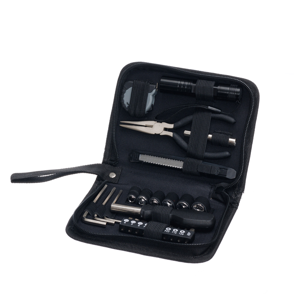 Набор инструментов STINGER W0109 на 25 предметов придётся по вкусу всем тем, кто привык всё делать своими руками. С таким комплектом можно без труда произвести практически любой мелкий бытовой ремонт. Все предметы надёжно закреплены в прочном нейлоновом чехле. Этот компактный набор можно хранить в тумбочке, на полке, в шкафу или бардачке машины. Стальные рабочие части инструментов отличаются повышенной прочностью, рукоятки выполнены из износостойкого пластика. Для удобства чехол дополнен матерчатой ручкой для переноски.