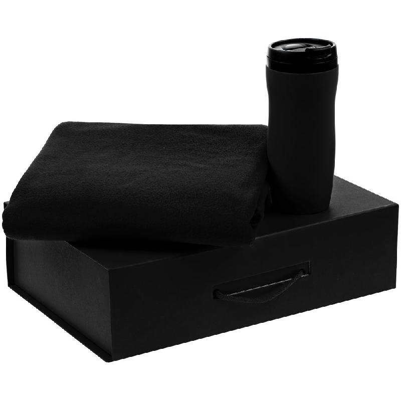 крышка, внутренняя колба - пластик; корпус - нержавеющая сталь; покрытие софт-тач; плед - флис, плотность 180 г/м²; коробка - переплетный картон; наполнитель - бумага