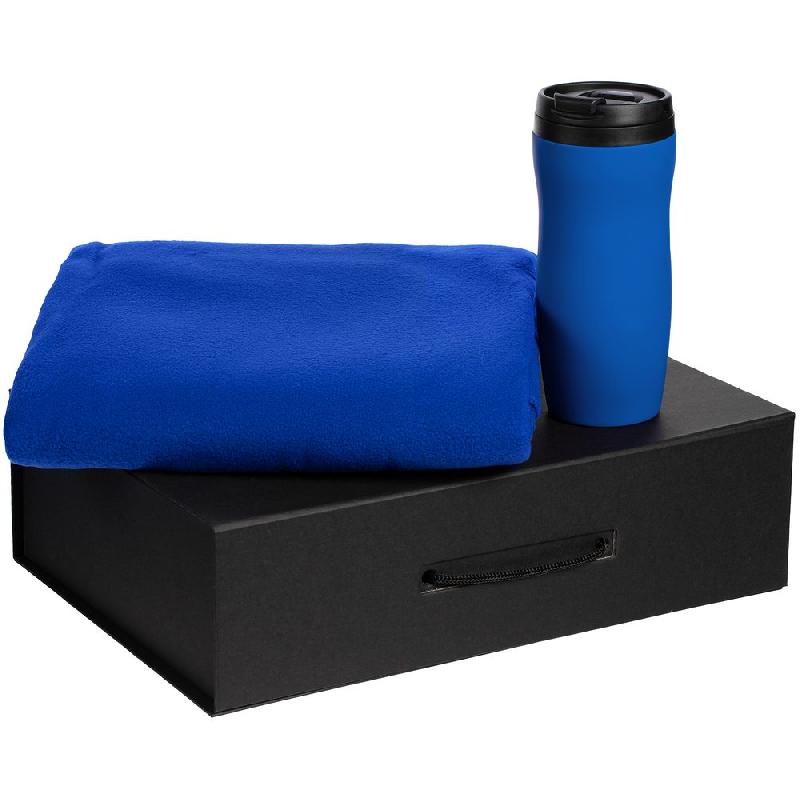 крышка, внутренняя колба - пластик; корпус - нержавеющая сталь; покрытие софт-тач; плед - флис, плотность 180 г/м²; коробка - переплетный картон; наполнитель - бумага
