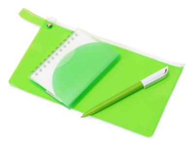 блокнот- прозрачный/зеленое яблоко, ручка- зеленое яблоко/белый, пенал- зеленое яблоко прозрачный