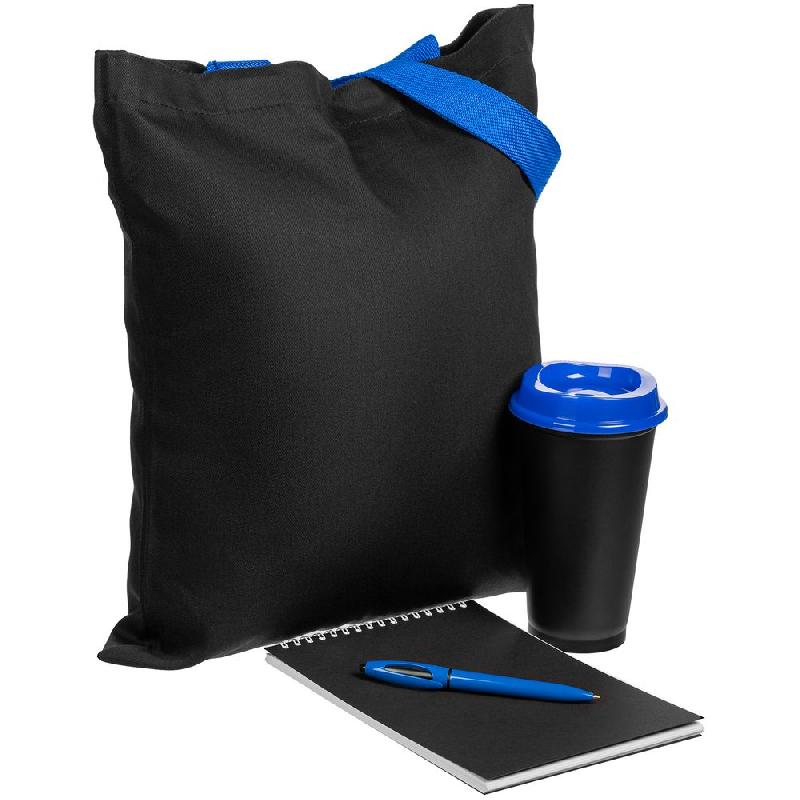 сумка - хлопок, полиэстер; стакан - пластик; блокнот - картон, бумага; ручка - пластик