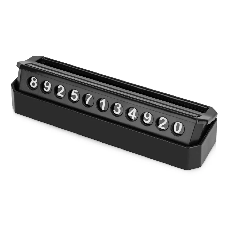 Компактная визитка чёрного цвета для размещения контактного номера телефона на панели автомобиля. Позволяет легко оставить свои данные при парковке, обеспечивая удобство и корректность в общении с другими водителями.