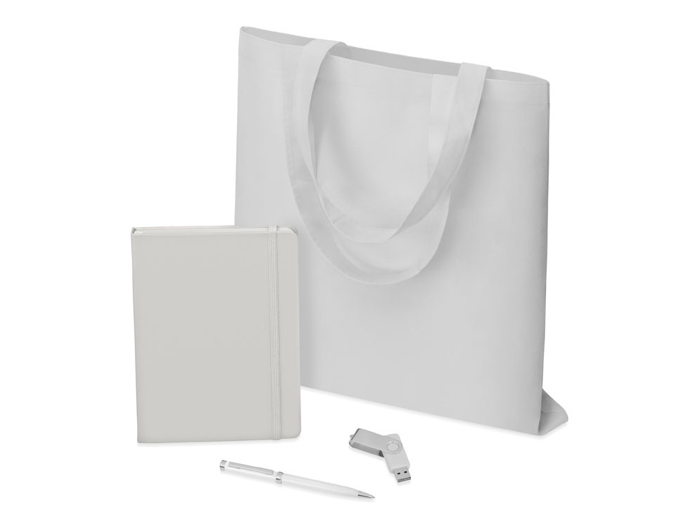Набор Guardar - отлично подойдет для промо-акций, рекламных кампаний и деловых мероприятий. С ним можно легко провести презентацию или публичное выступление по теме. С помощью ручки Сильвер Сойер” и блокнота Spectrum A5” вы зафиксируете все свои гениальные мысли и идеи, а флеш-карта Квебек” позволит сохранить важные данные и перенести их на компьютер. Товары подобраны в единой цветовой гамме, поэтому отлично подойдут к фирменному стилю компании. Они также легко персонализируются.