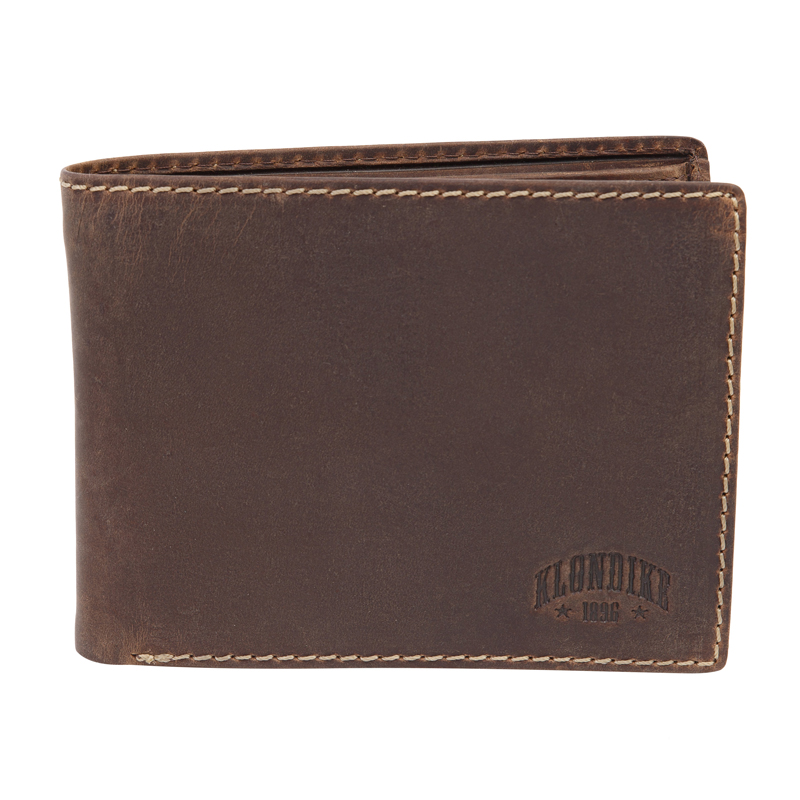 • Бумажник высочайшего качества фирмы «Klondike» сделан из натуральной кожи и обеспечивает безопасное хранение купюр, монет, кредитных карт, удостоверения личности и документов за счет удобных отделений.