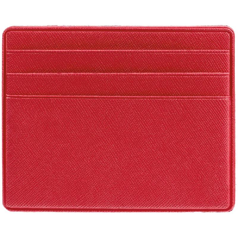 Чехол для карточек из искусственного материала, имитирующего сафьяновую кожу, с шестью отделениями для кредитных карт и одним — для сложенных купюр.