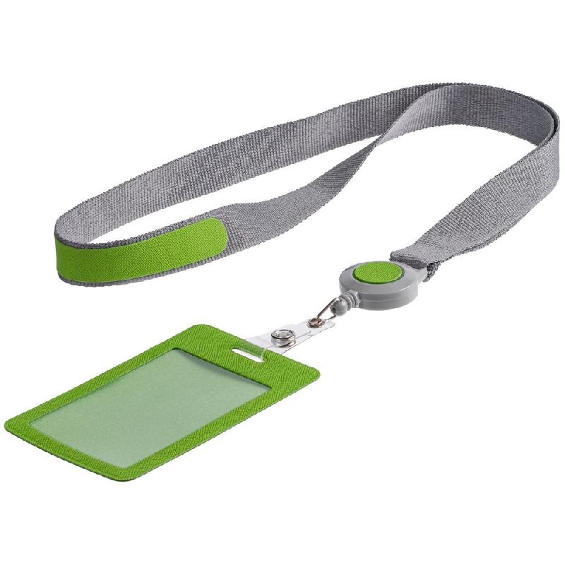 Чехол для пропуска из искусственного материала с пластиковым окошком, прикрепленный пластиковым клипом к ретрактору и ленте.