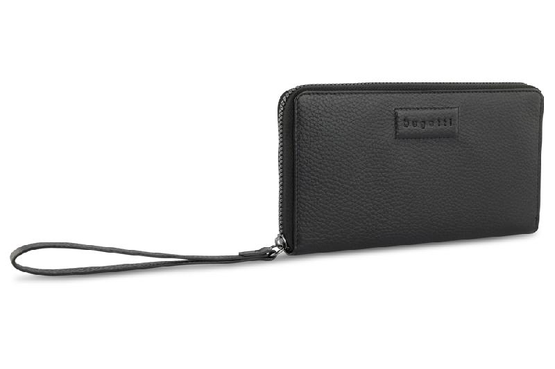 Кошелёк женский BUGATTI Elsa, с защитой данных RFID, чёрный, воловья кожа/полиэстер, 18,7х2х10 см