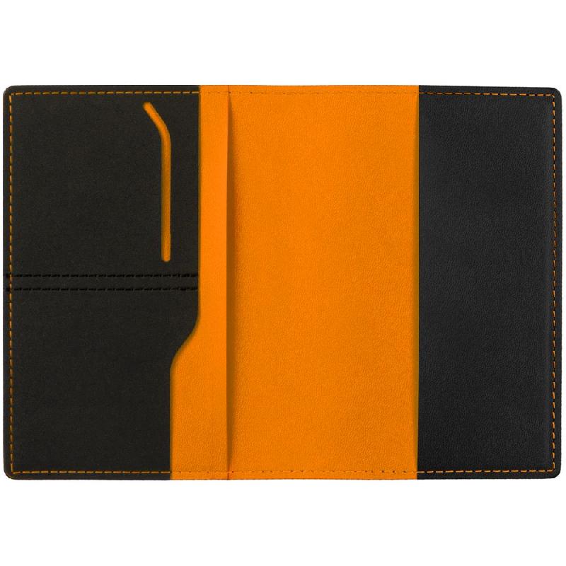 Имеет основное отделение для паспорта и 2 отделения для визиток или кредитных карт.