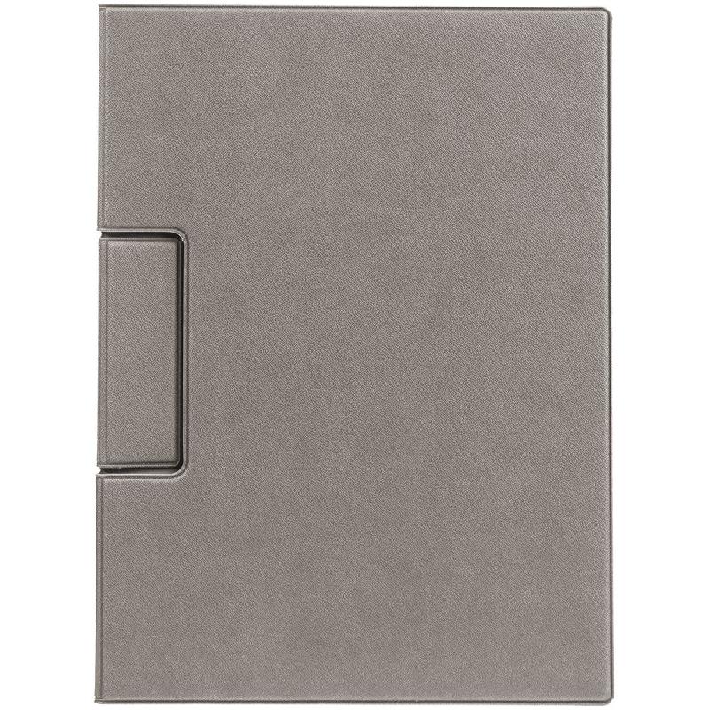 Папку можно использовать в стандартном вертикальном формате или перегнуть обложку и поставить в качестве таблички горизонтально. Магнитный клип удерживает до 10 листов.