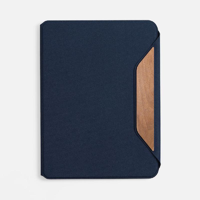 Обложка из ткани на магнитной застежке c деревянной шильдой: