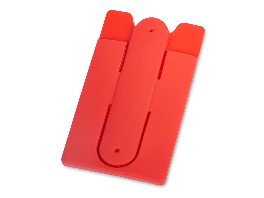 Чехол для визиток и кредитных карт с функцией подставки. За счет клейкой основы прикрепляется к обратной стороне телефона или любой другой плоской поверхности.