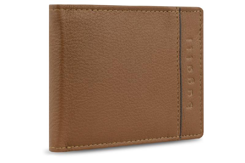 Портмоне BUGATTI Banda, с защитой данных RFID, коньячного цвета, кожа козы/полиэстер, 10,5х2х8,3 см