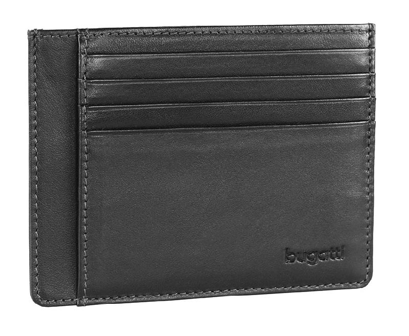 Портмоне для кредитных карт BUGATTI Primo, чёрное, натуральная воловья кожа, 11,5х0,5х9 см
