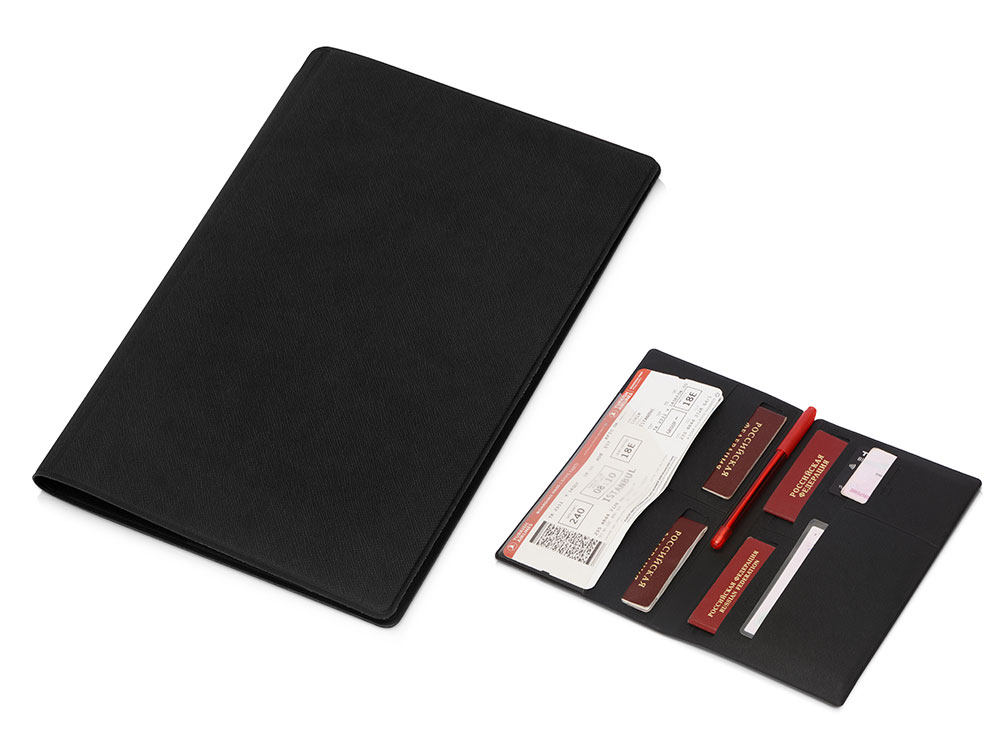 Внутри имеется восемь карманов, которые позволяют вместить документы для семьи из четырех человек. Документы аккуратно разложены и не утратят свою форму. Благодаря своим преимуществам органайзер для путешествий становится не только отменным подарком, но и эффективным рекламным средством.