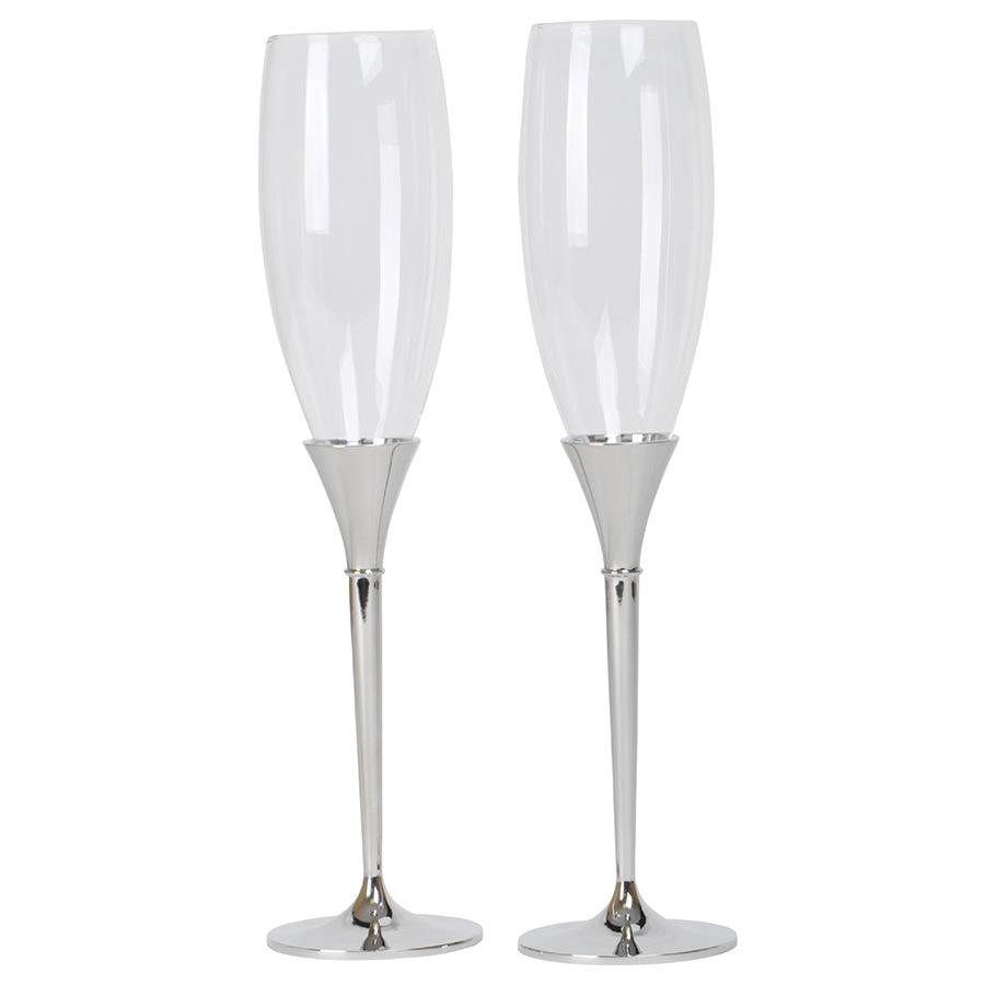 Бокалы для шампанского "Asti" (2шт), D=7см, Н=28,5см, стекло, посеребренный металл, лаковое покрыт