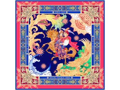 Прочитав сказку юного дарования, сам великий Александр Сергеевич Пушкин сказал: Этот род сочинений я могу теперь оставить - и Петр Ершов был принят в круг петербургских писателей.В этом году сказке из золотого фонда русской литературы, переведенной на все языки мира, исполняется 185 лет. Ее яркие краски мы перенесли на шелк и создали платок Конек-Горбунок. Благодаря тонкой работе дизайнера, со страниц книги, как живые, сошли герои любимой с детства истории: Иван, прекрасная Царь-девица и волшебный Конек-Горбунок. А в роскошных орнаментах сплелись легендарное перо Жар-птицы, Красное Солнышко и Месяц…