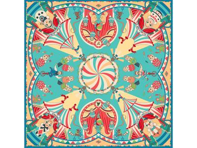 На полотне воплощена добрая атмосфера народного веселья и волшебства, где каждый рисунок напомнит о сказках, ярмарках и лубочных иллюстрациях. В центре лучится купол цирка, разноцветный словно леденец, а вокруг раскинулись нарядные шатры. В свете софитов запечатлены расписные образы игрушек, зверей, эквилибристов и силачей – уникальные и неповторимые, они образуют кружащийся танец.