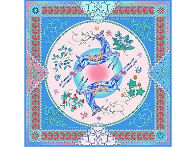 Платок обрамлен традиционными народными орнаментами – код, бережно передающийся из поколения в поколение, вобравший в себя благоговение перед могучей и прекрасной северной природой.