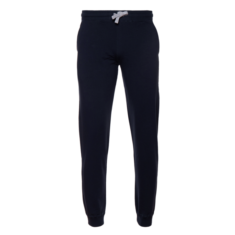 Мужские брюки свободного силуэта с широким эластичным поясом-кулисой и прорезным карманом.