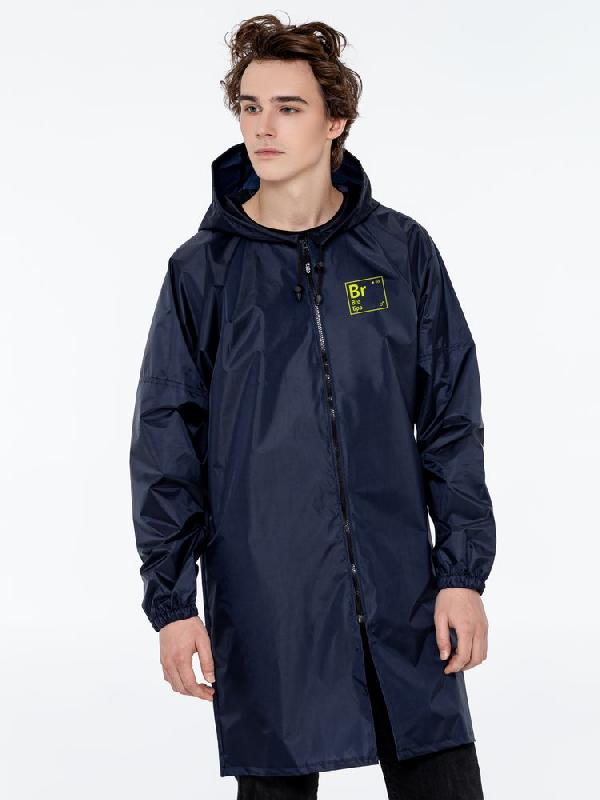 Плащ-дождевик из ткани таффета на молнии с капюшоном. Складывается в мешочек — удобно брать с собой.