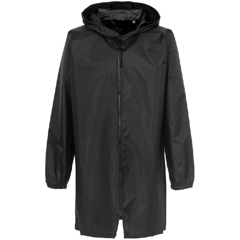 Плащ-дождевик из ткани таффета на молнии с капюшоном. Складывается в мешочек — удобно брать с собой.