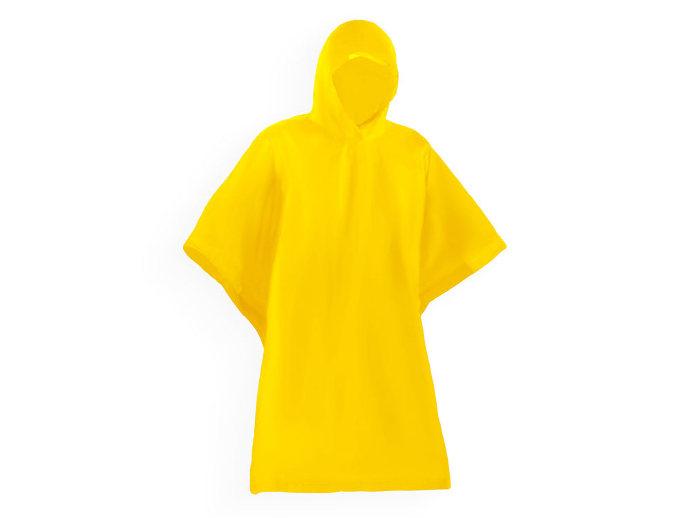 Складное водонепроницаемое пончо с капюшоном и отверстием для рук, с боковой застежкой на кнопки. Широкий диапазон цветов. Изготовлен из ПВХ.