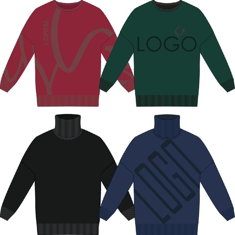 Модель: однотонный гладкий свитер унисекс, спущенное плечо, крупная петля. Чередуя различные типы петель на гладком полотне, можно вывязать любую графику: логотип, текст, товарный знак. Ворот, манжеты и низ изделия вывязаны резинкой.