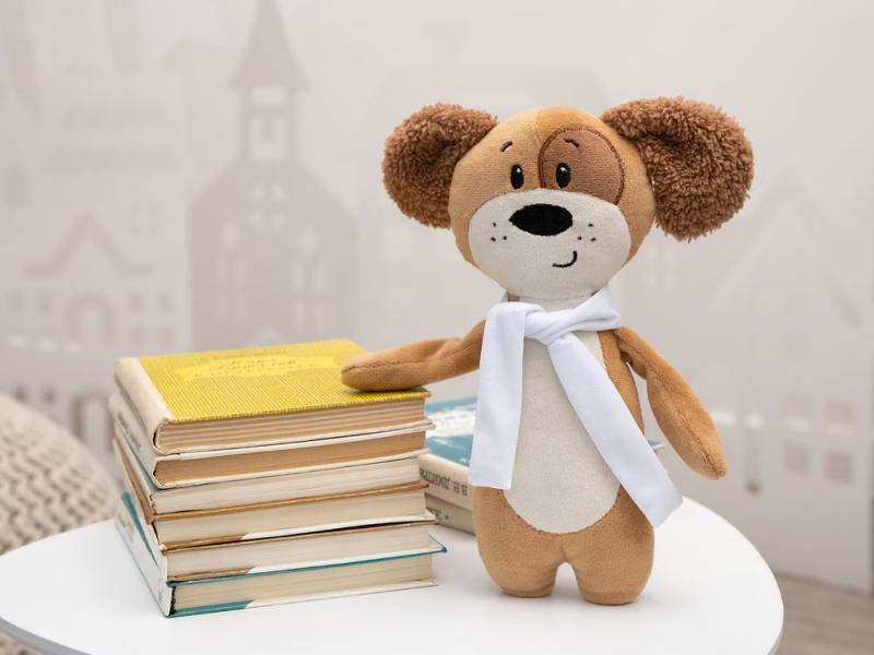 Симпатичная и дружелюбная собачка может стать надежным спутником и верным талисманом в любом деле. Шарфик снимается — так на него легко нанести пожелание или логотип компании.