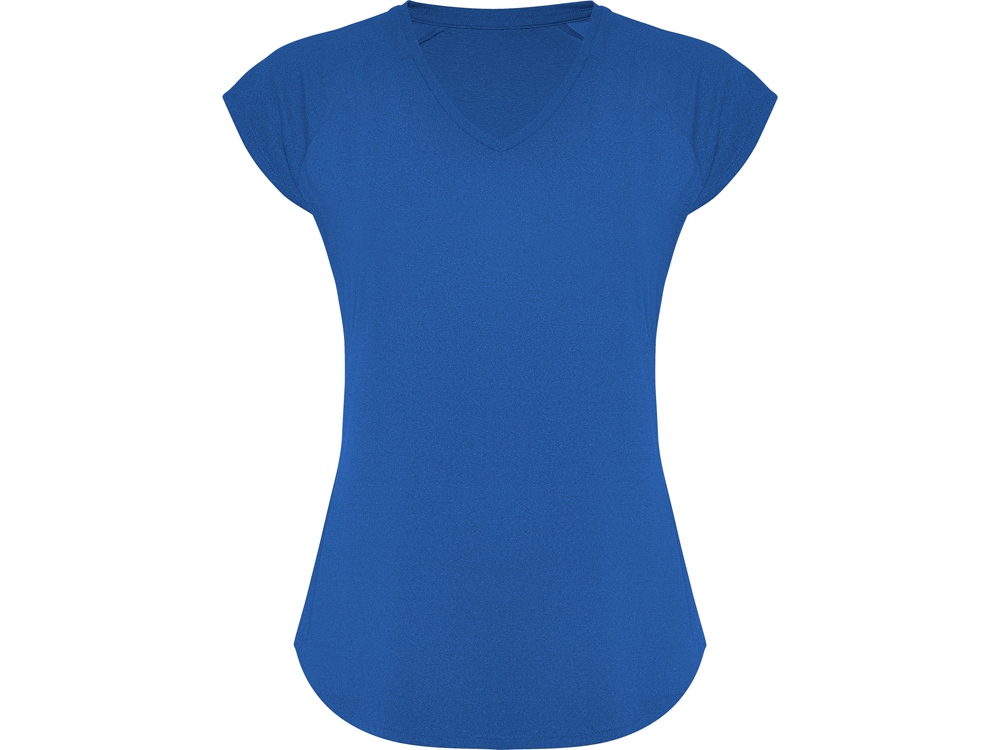 Спортивная женская футболка с коротким рукавом реглан. Вырез горловины V. Полотно из полиэстера на ощупь напоминающее хлопок. Приталенный силуэт.